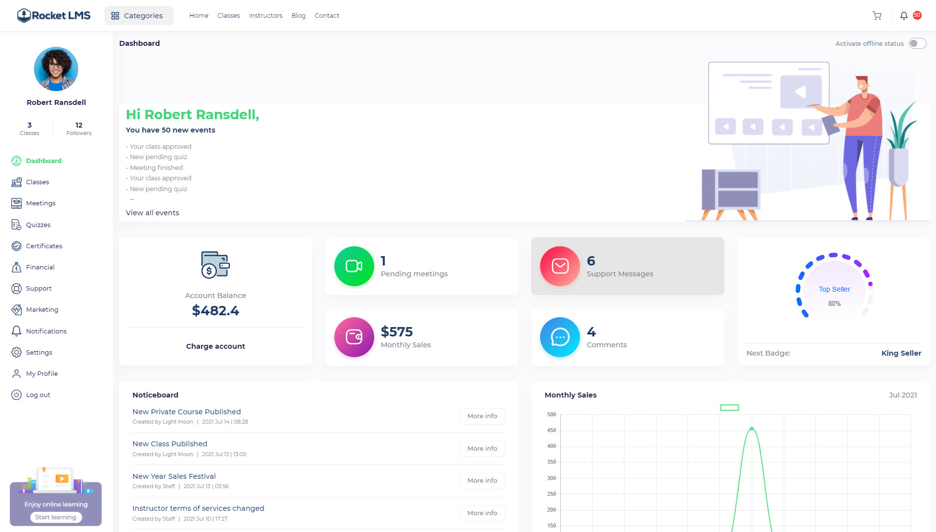 Criar e gerenciar uma plataforma de ensino nunca foi tão fácil, e o Rocket LMS ajuda de várias maneiras: