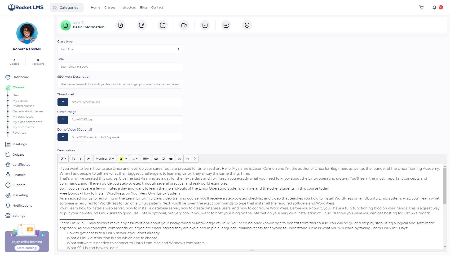 O Rocket LMS é um sistema completo de ensino online (LMS) desenvolvido para criar, gerenciar e escalar plataformas de educação digital. Ideal para instrutores, escolas, empresas e empreendedores, ele permite vender cursos, gerenciar alunos e construir um negócio de e-learning totalmente profissional.
